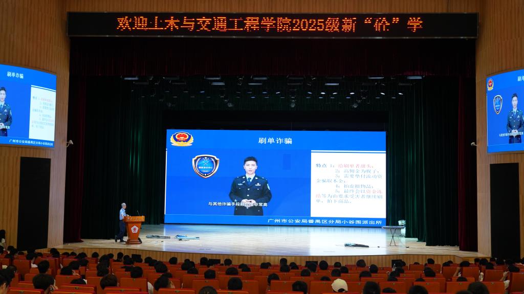 在大学城校区文化活动中心演艺厅举办2025级新生安全防诈专题讲座。番禺区分局小谷围派出所民警陈林群应邀作主题分享。nowscore捷报