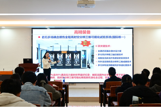 同时,周翠英教授通过介绍红层这一典型地质条件,展示了诸多红层地质构造的照片,形象地描述该地质的工程特性,着重强调了红层灾变防治工作的重要性。周翠英教授鼓励同学们勇于探索新兴技术,将理论知识与实际应用紧密结合,不断挑战自我,追求卓越。