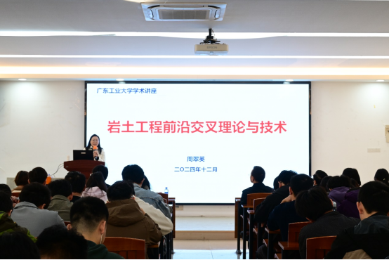 周翠英教授以“岩土工程前沿交叉理论与技术”和“红层灾变防控前沿交叉理论与技术”为主题进行了学术分享。在讲座中,她从五个核心角度——理论方法、绿色技术、调控体系、智能平台以及高精装备——系统地阐述了当前特殊岩土体灾变防控研究领域的重点方向与创新突破,特别是她所领导的研究团队近年来取得的若干突破性进展,并强调智能化技术对岩土工程相关技术发展的重要意义。
