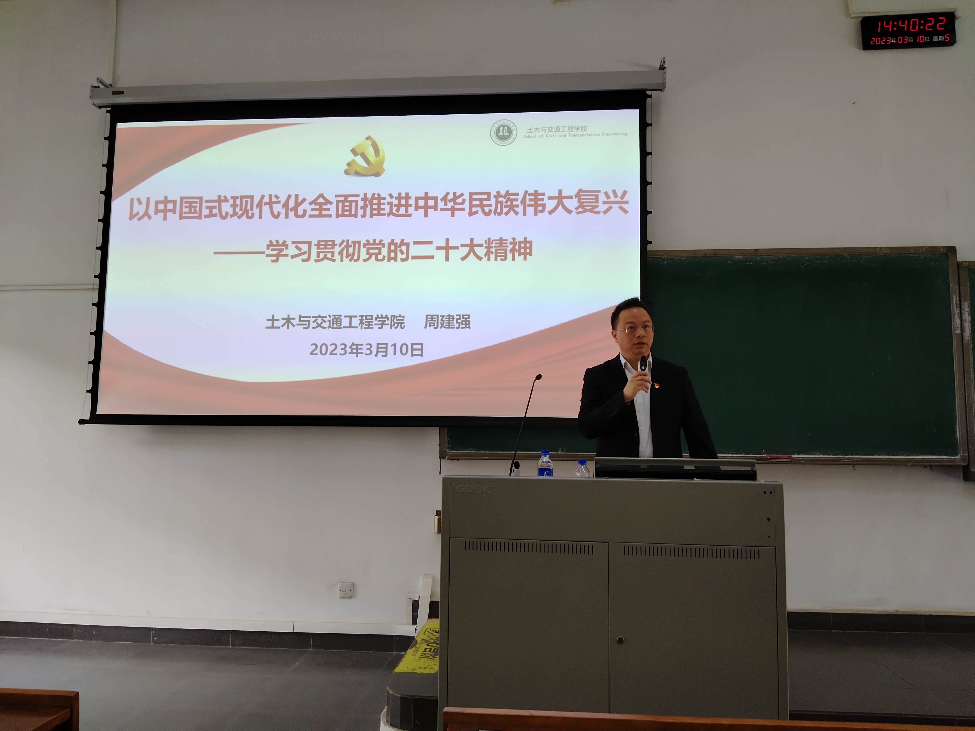 2022级交通运输、建筑环境与能源应用工程、测绘工程3个班的学生讲授了新学期第一堂思政课。周建强带领同学们深入学习了什么是中国式现代化、为什么要聚焦中国式现代化、广大青年如何为实现中国式现代化贡献青春力量。他结合nowscore捷报