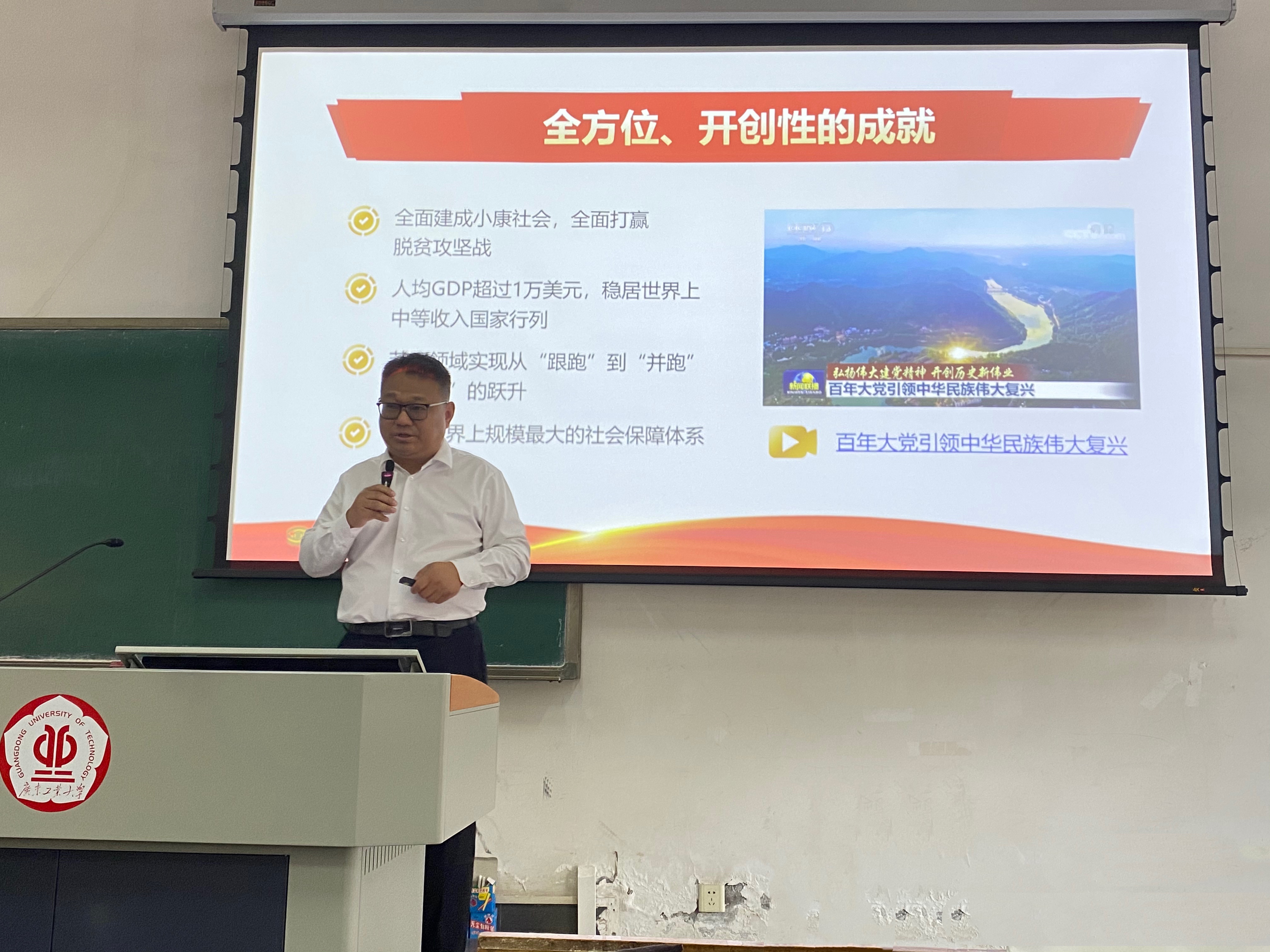 邓俊给21级土木类1、2、3、4班上了思政课,与同学们一起学习了党的十九届六中全会精神,重点学习了《中共中央关于党的百年奋斗重大成就和历史经验的决议》,结合图文并茂的PPT和精彩的视频片段,与同学们详细阐述了党的百年奋斗重大成就、历史贡献和宝贵历史经验,详细解读了习近平新时代中国特色社会主义思想的核心内容,强调了“两个确立“的实践、理论依据及重大意义,引导同学们从党的百年奋斗中看清楚过去为什么能够成功、弄明白未来怎样才能继续成功,从而更加坚定跟党走,树立远大理想,珍惜大学时光让自己变得更优秀,今后更好为实现中国梦做奉献。