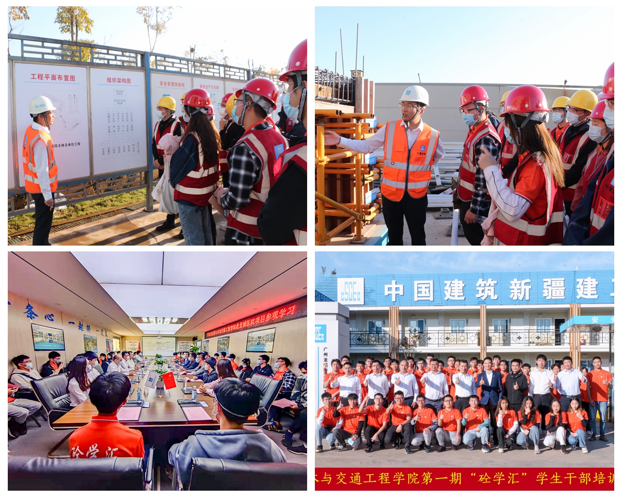 党建“五联共建”合作企业中建新疆建工华南公司广州龙城国际康复医院项目部参观调研。华南公司党委副书记、纪检书记、工会主席王西朝亲自接待了师生一行。在项目部会议室,在王西朝书记的讲解下大家观看了中建新疆建工集团宣传片、了解了企业发展历史和现状,紧接着龙城医院项目经理杨凯睿先生向大家详细介绍了项目的工程概况、新型施工工艺、攻克的技术难关、先进施工管理经验以及党团组织建设等情况。同学们结合自己的专业知识,积极咨询项目的相关技术难点和方法,并得到了项目经理和总工程师的细致解答,充实了对理论知识和工程实践的理解。随后,在项目部负责人的带领,师生们深入项目现场,了解了项目施工的进展情况。通过此次参观调研活动,大家对龙城医院工程项目先进的施工工艺、管理模式和央企党团组织建设有了更加深入的了解,开阔了专业视野,对央企在经济社会建设中展现出的责任与担当有了切身体会,也激发了大家投身新时代土木工程建设的热情。