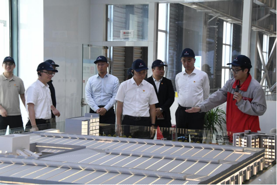 在中建海龙科技有限公司总经理赵宝军、副总经理杨柳等陪同下,师生党员一行参观了基地室外产品展示长廊、建筑科技展览馆,了解企业发展历程和模块化智能集成建筑项目,实地考察模块化集成建筑智能生产车间,对中建海龙在智能建造取得的项目成果和科技突破表示高度认可。