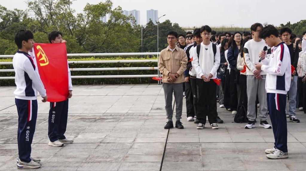党委副书记陈颂坚、团委书记刘思利、2025级辅导员唐熙、研究生辅导员梁伟源与2025级全体新生共同见证这一庄严时刻。仪式由2025级辅导员刘甜甜主持。
