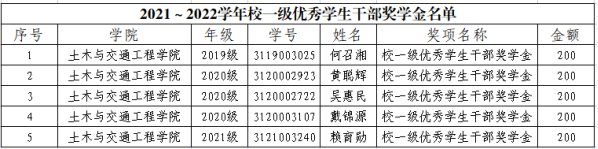 2021-2022学年度学生奖学金拟获奖名单如下,现予以公示: