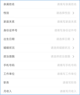 (二)完整添加家庭成员信息。点击“添加成员”,家庭成员信息必须如实、完整填写(包括姓名、与本人关系、政治面貌、手机号码、工作单位),不能只填写部分成员信息,此信息将作为奖助学金评选和家庭经济困难学生认定的主要依据。