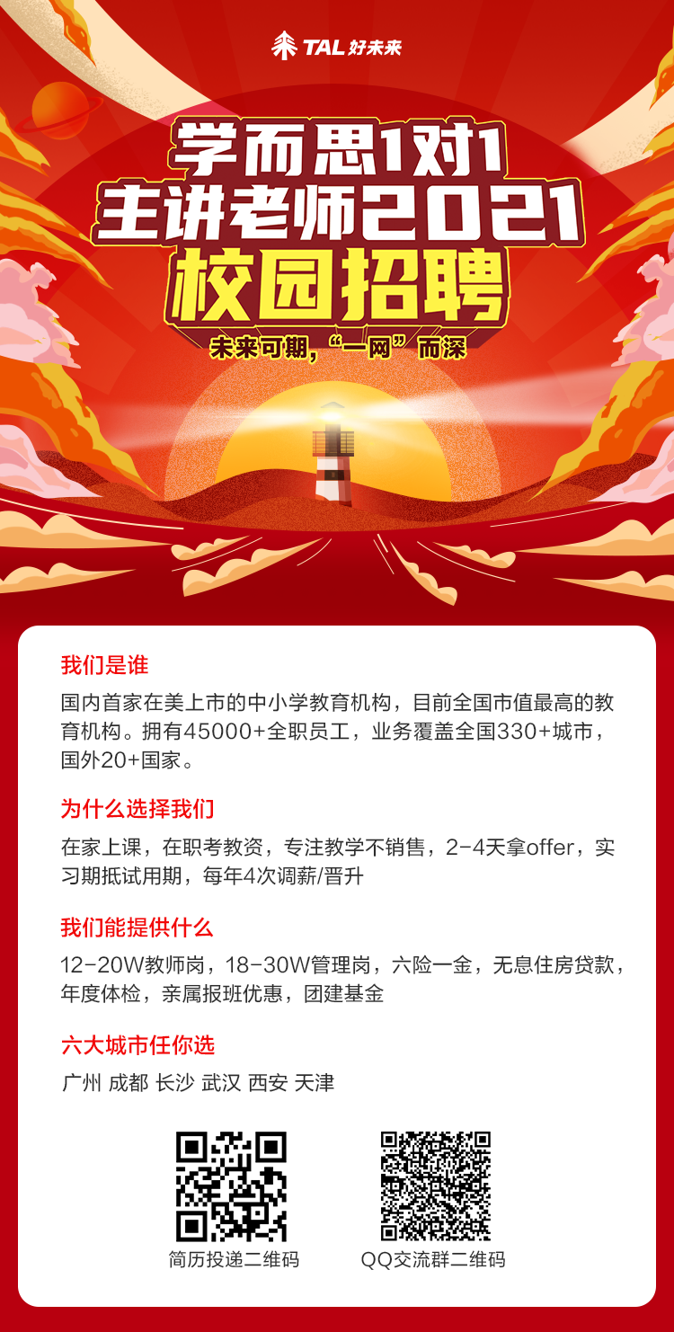 学而思1对1在线招实习主讲教师啦